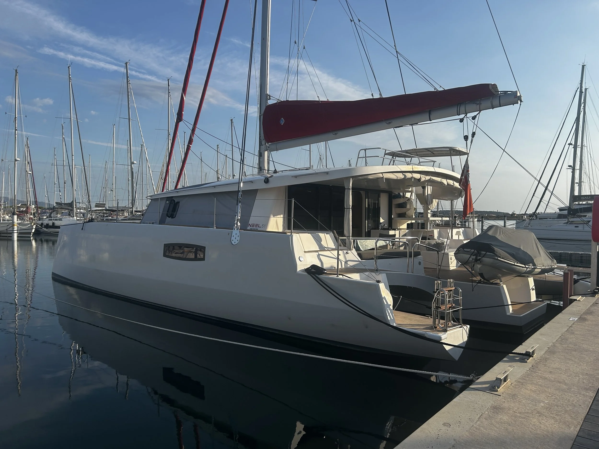 If you own a multihull, Emeraude Multicoques are a specialist multihull agent and have offices in the port. They are partnered with Azure Boat Services just down the coast in Canet-en-Roussillon, and between them offer an impressive array of sales and maintenance services. They have carved out a reputation for knowing Neel trimarans, and we have had nothing but a positive experience with them both, including new solar panels fitted, several metalwork projects, a few electrical jobs and a rigging check. Emeraude also run a number of the multihull berths on longer term basis, and the price is pretty decent. We kept Skylark in Port Leucate (where she was lying when we bought her) for our first year just to give us options if the sailing didn’t work out or we had problems with the boat.