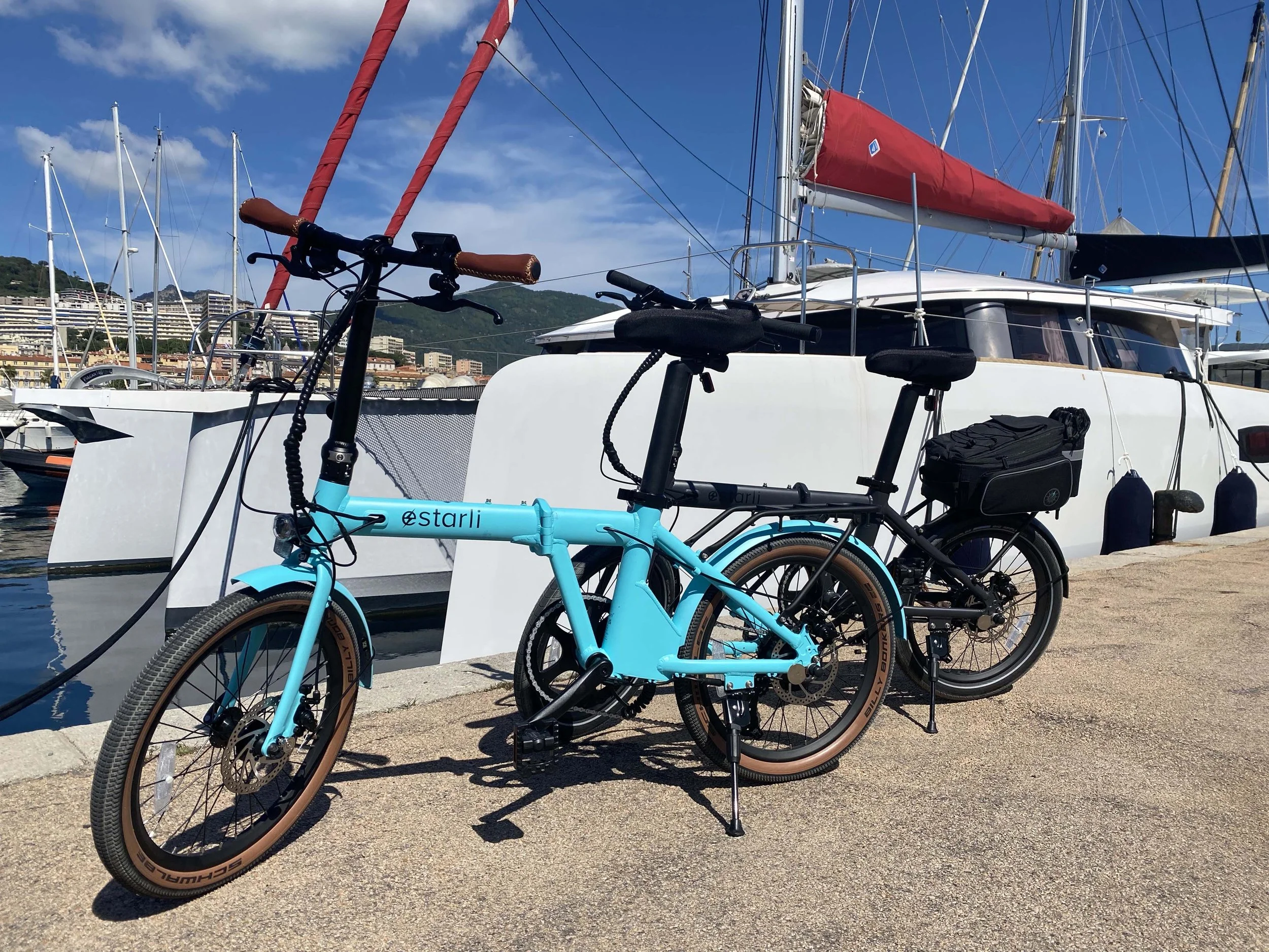 At 18kg they are not the lightest e-bikes around, but they are easily manageable even using the tender. They fold up small enough to stow away onboard or take into a café, have built in locks (although we also have a sturdy chain and padlock) and are made in Great Britain. The 20 inch wheels give great stability, manoeuvrability and comfort and we invested in padded seats for extra support. A super addition to our cruising life.